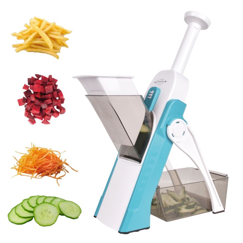 Utiliser une mandoline vous effraie ? Vous avez peur de vous blesser en coupant vos fruits et vos légumes ? Débarrassez-vous de vos anciennes mandolines pour essayer la mandoline multifonction Pump’N’Dice !