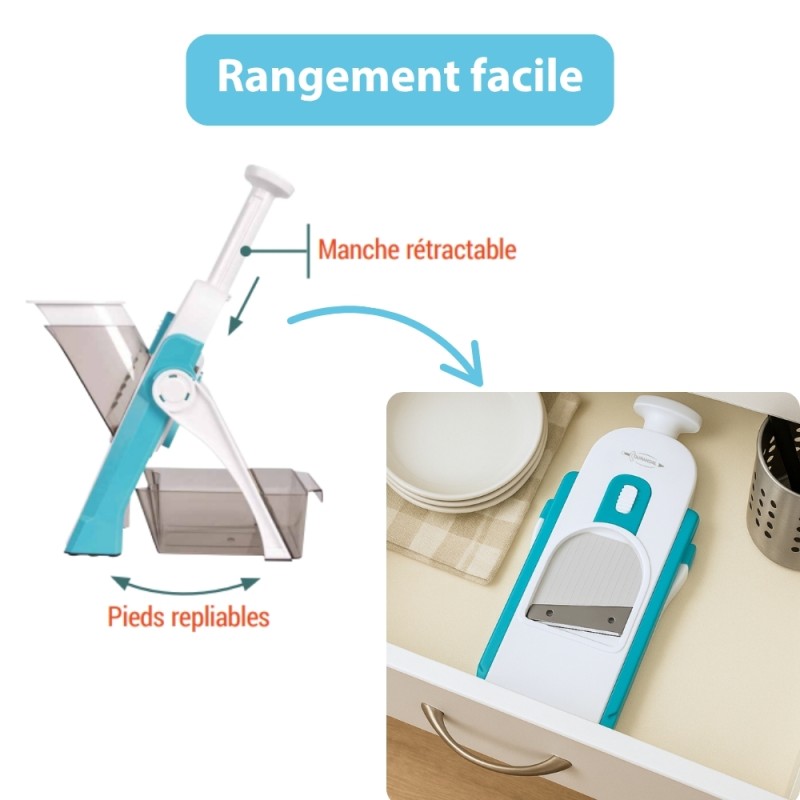 Offrant une sécurité d’utilisation inégalée, avec ses lames rétractables, son support à aliments et son poussoir de sécurité, vous ne courez plus aucun danger et pouvez couper en toute sécurité !